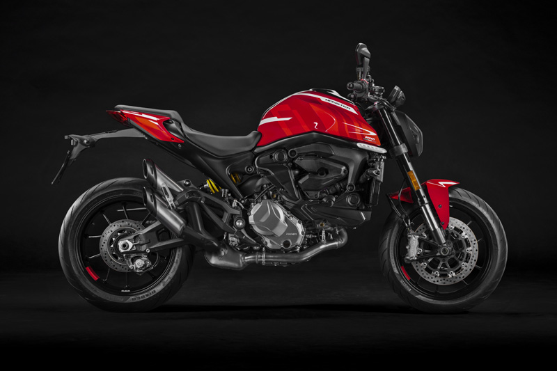 New Ducati Monster 2021 dapat dilengkapi dengan fairing perut mesin ringan dan fungsional dalam warna yang sama dengan bodywork, dan dengan dudukan plat nomor balap. Bekerja sama dengan Rizoma, Ducati juga menawarkan rangkaian aksesoris berbahan billet aluminium, seperti  penyeimbang stang, footpeg, minyak rem, dan reservoir minyak kopling.