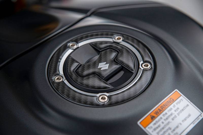 Suzuki GSX-R1000R Phantom mengantongi lean angle-sensitive ABS, balance free suspension, launch control, braided front brake hoses, adjustable swingarm pivot, LED position lights, negative instrument display dan upper yoke yang ringan sebagai standar.