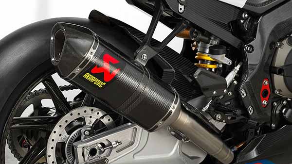 Penggunaan sistem knalpot dari Akrapovič juga memberikan kontribusi dalam pengurangan berat motor.