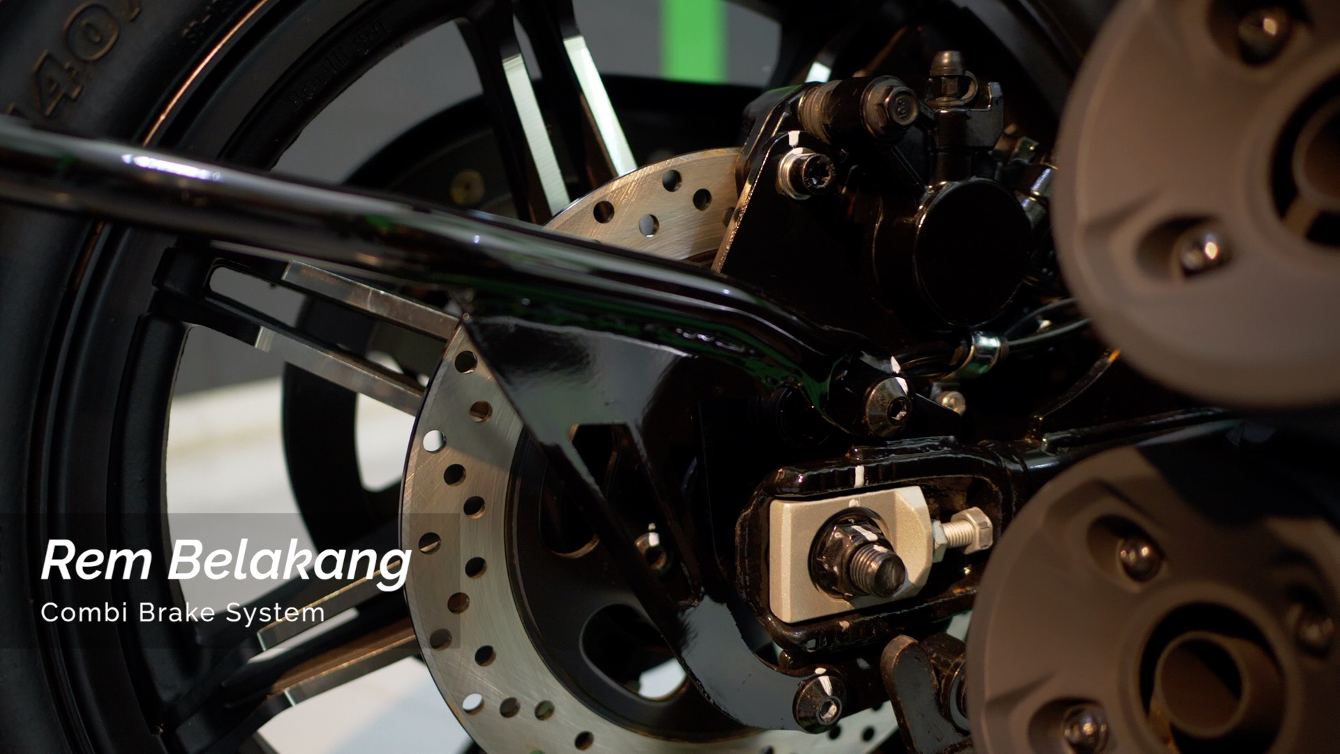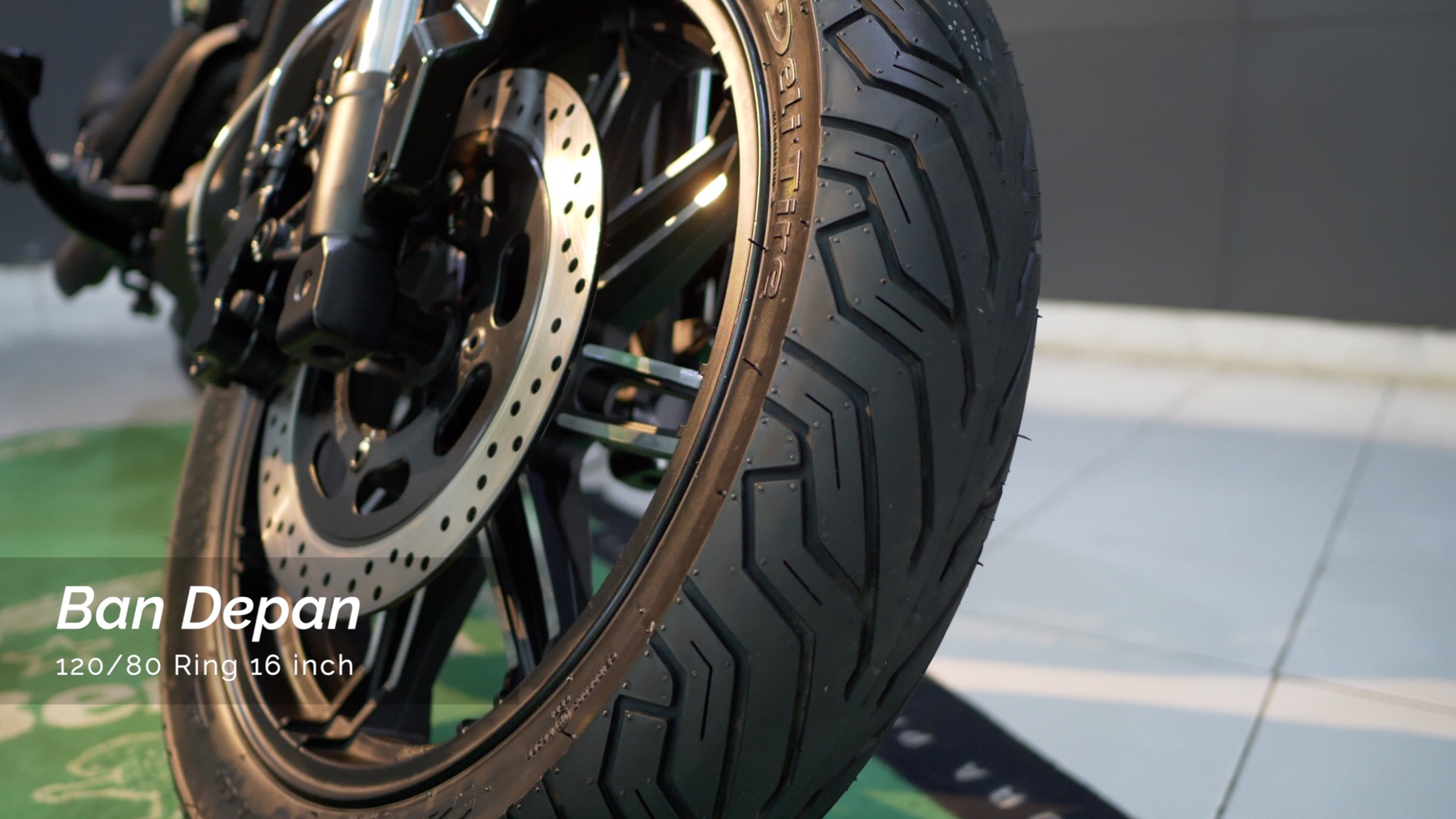 Lanjut pada bagian suspensi motor, cruiser terbaru ini menggunakan suspensi depan Upside Down berukuran 38 mm. Sedangkan suspensi belakang menggunakan Double Shock Absorber di sisi kiri dan kanan motor. Untuk ukuran depan ban motor yakni 120/80 Ring 16 inci. Sistem pengereman ban depan sudah menggunakan 3 Piston, sehingga pengereman semakin kuat. Sedangkan sistem pengereman ban belakang menggunakan Combi Brake System untuk memaksimalkan power pengereman. Ukuran ban belakangnya yakni 140/70 Ring 16 inci.