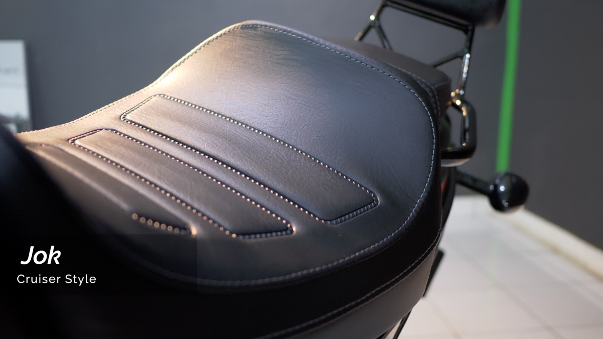 Desain jok pada motor ini mengusung cruiser style pada umumnya. Desain ini dipilih untuk memaksimalkan kenyamanan dalam berkendara. Karena model motor yang cruiser, kaki pengendara dengan nyaman bisa diselonjorkan ke depan. Hal unik lainnya terletak pada key system yang berada pada bagian body samping kanan motor.