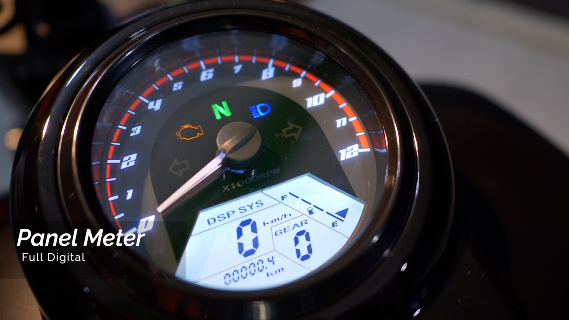 Selain itu desain pada Fat Bar sangat maskulin dan tidak adanya speedometer pada stang seperti motor pada umumnya. Untuk panel meter-nya sendiri terletak pada bagian tangki motor dan sudah full digital. Ngomong-ngomong soal tangki, kapasitas tangki yang dimiliki cukup besar yakni sebesar 20 liter.