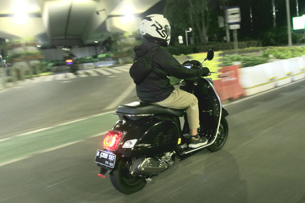 Dengan performa tersebut, Vespa ini terasa cukup gesit untuk diajak bermanuver di jalanan perkotaan dan tetap tenang saat diajak berjelajah ke luar kota dengan kecepatan yang cukup tinggi.