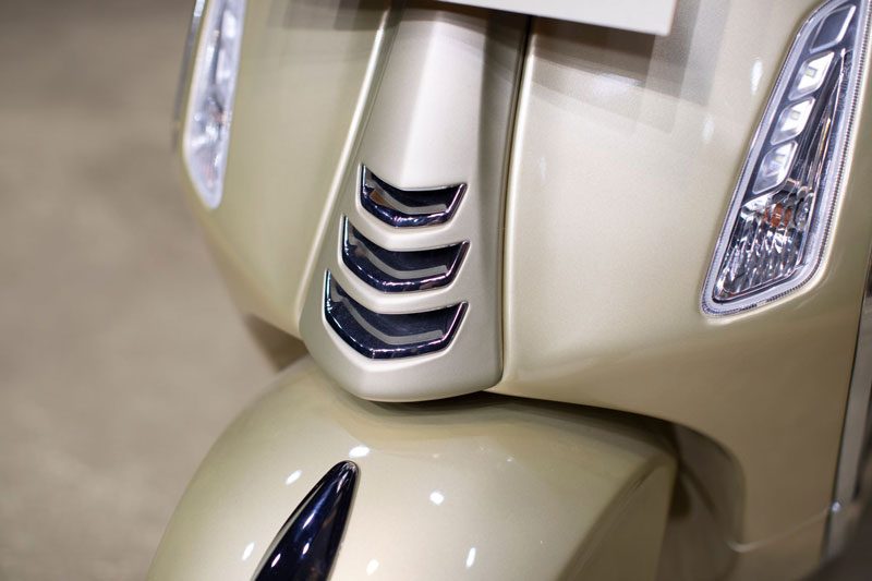 Untuk menekankan perjalanan Vespa yang bersejarah selama 75 tahun lebih jauh, sebuah badge khusus juga diletakkan di bagian penyimpanan depan Vespa 75th Anniversary sebagai reinterpretasi yang kuat dari masa lalu dan pengingat pencapaian bersejarah bagi Vespa.