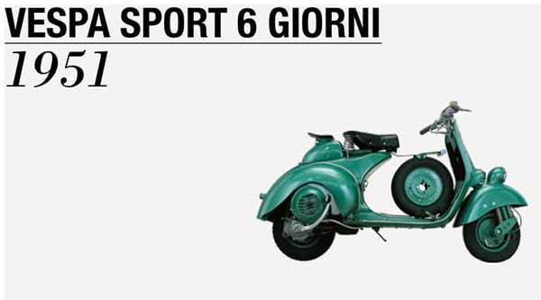 Untuk memperingati peristiwa penting ini, pabrikan Italia tersebut memproduksi “Sport 6 Giorni” yang mengambil namanya dari kemenangan itu. Vespa Sport 6 Giorni secara estetika sangat mirip dengan model standar. Perbedaannya terdapat pada tangki bahan bakar yang lebih besar, perisai yang lebih ramping dan cover samping kanan yang lebih besar untuk menutup karburator.